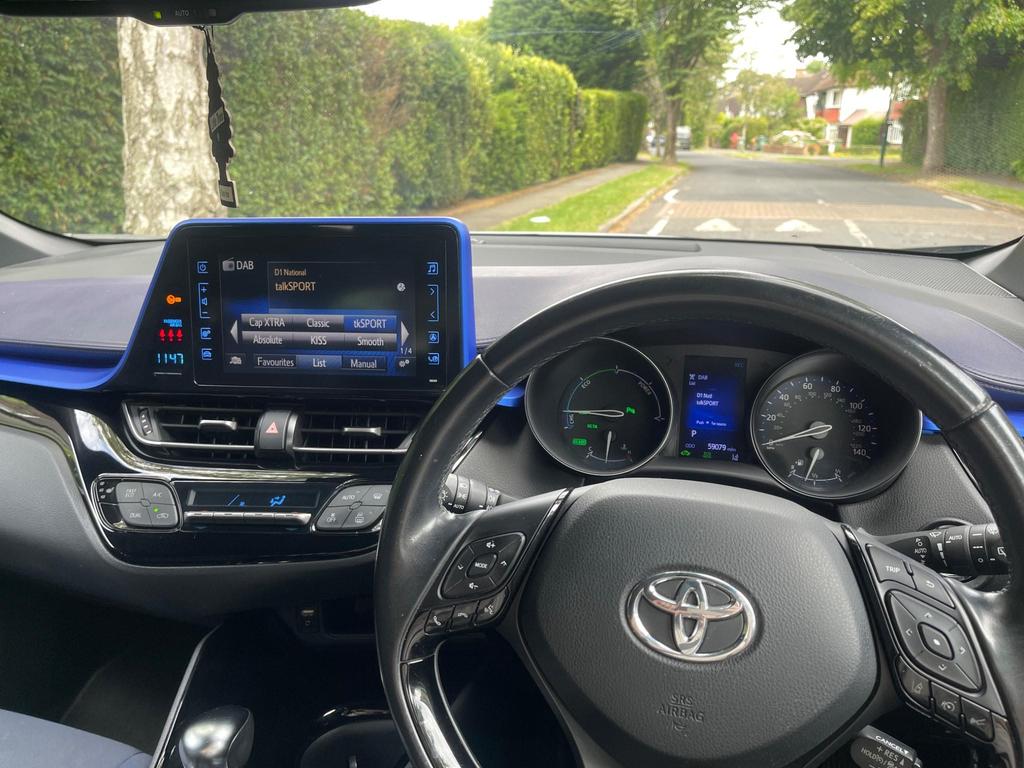Great Toyota C-HR Dynamic HEV CVT 5 door, Finished in Grey Metallic with black cloth interior, 2 keys, service history and was last serviced at 52813 by Toyota. Very good specification and drives very well and previous owner claiming 88 miles to the gallon. 12 months MOT .